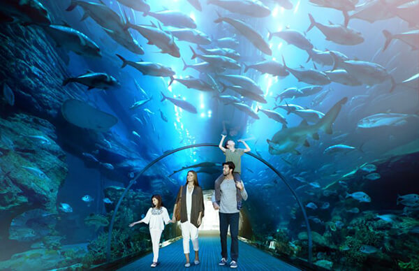 ave you been to an underwater zoo? Yes, one exists! Visit Dubai Aquarium, is one of the popular tourist attractions in Dubai which has varied activities, including an underwater zoo, glass-bottom boat tours, cage snorkeling, and shark diving